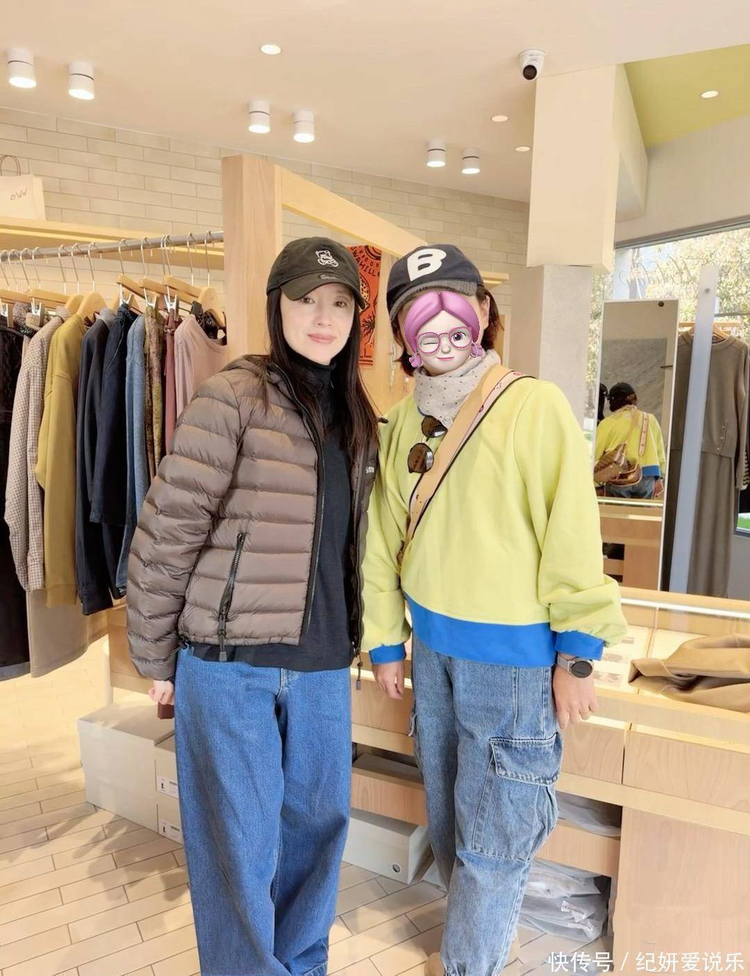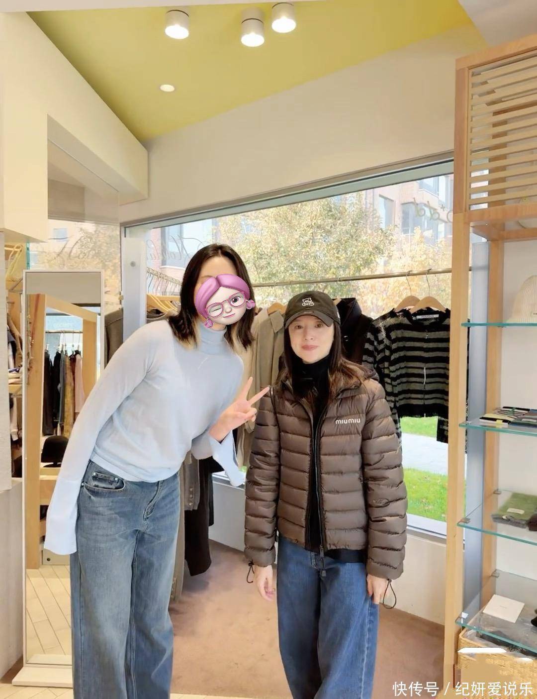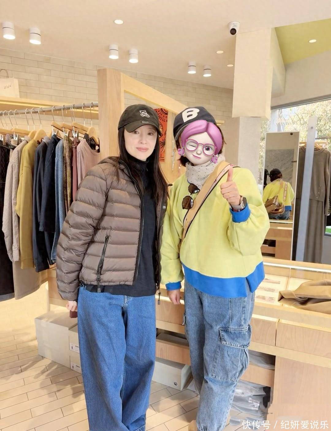 有幸运网友碰到她巡店还合了影,那天她穿得简单,也没怎么化妆,看着清清爽爽的,还带点文艺劲儿。远看她状态特好,皮肤白、身材苗条,可凑近看,皮肉有点松,毕竟快五十岁了,年龄感还是有的。大家印象里她挺高,其实现实中不算高,跟粉丝合影时,对方稍微弯点腰都比她高半个头。不过她官方身高本来就 160,那天没穿高跟鞋才显矮,平时出席活动好好打扮下就显高多了。